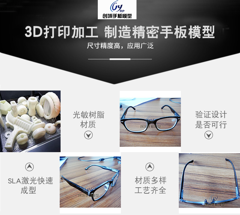 在工業設計流程中,手板模型制作是重要的環節,從純手工模型制作到半機械化模型制作到現代CAM,手板模型制作的進步是現代制造技術進步的一個縮影,實踐證明,手板模型的制作不僅對產品設計決策起著十分重要的作用,更是產品信息保密及市場推廣的利器,不可小覷。眼鏡手板主要由SLA激光快速成型制作完成,材質:光敏樹脂料。